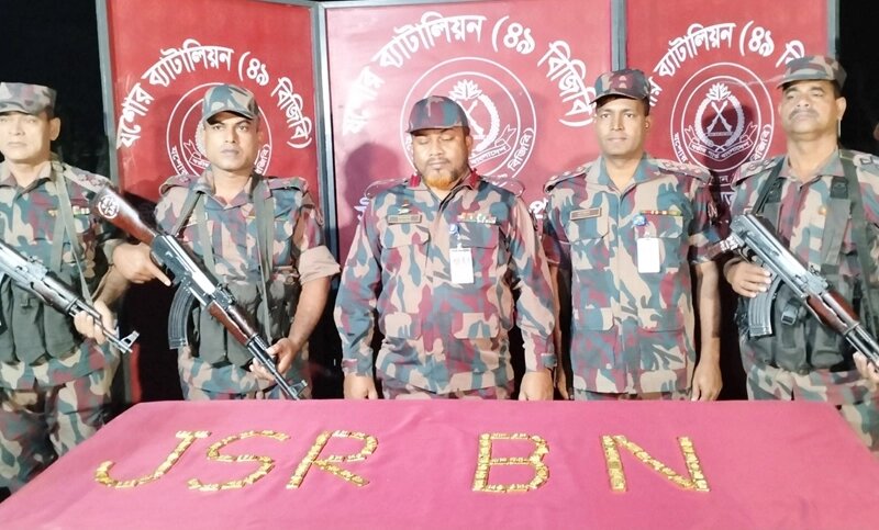 যশোর ৪৯ বিজিবি ব্যাটালিয়নের অধিনায়ক লেফটেন্যান্ট কর্নেল শাহেদ মিনহাজ সিদ্দিকী স্বাক্ষরিক এক প্রেস বিজ্ঞপ্তিতে জানানো হয়, ১৯ নভেম্বর শনিবার দিবাগত রাতে যশোরের চৌগাছা উপজেলার শার্শা কাশিপুর-শাহজাদপুর সড়কের পাশ থেকে অভিযান চালিয়ে ৮০টি সোনার বার উদ্ধার করা হয়।