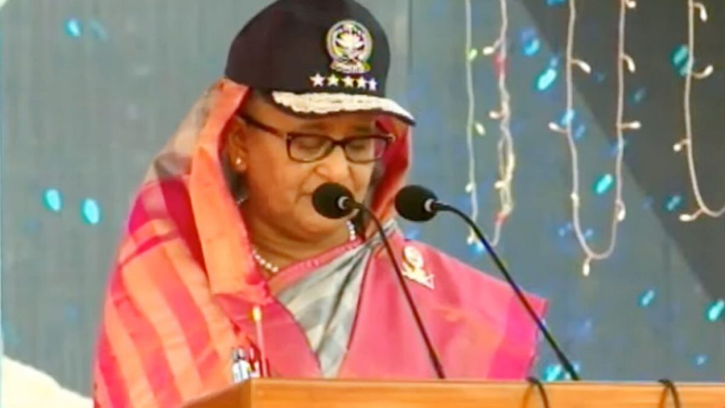 এর আগে প্যারেডের অভিবাদন মঞ্চে প্রধানমন্ত্রী পৌঁছালে তাকে স্বাগত ও সালাম জানান স্বরাষ্ট্রমন্ত্রী আসাদুজ্জামান খান কামাল ও পুলিশ মহাপরিদর্শক (আইজিপি) চৌধুরী আবদুল্লাহ আল-মামুন।পরে প্রধানমন্ত্রী শেখ হাসিনা খোলা জিপে চড়ে প্যারেড পরিদর্শন করেন।